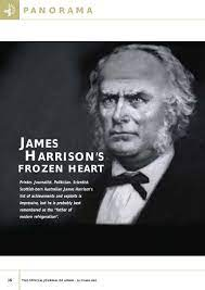James Harrison– nascut la17 aprilie 1816 si decedat la 3 septembrie 189. A fost un tipar scoțian de ziare, jurnalist, politician și pionier în domeniul refrigerației mecanice. Harrison a fondat ziarul Geelong Advertiser și a fost membru al Consiliului Legislativ Victorian și al Adunării Legislative Victoriane. Harrison este, de asemenea, amintit ca inventatorul procesului de refrigerare mecanică care creează gheață și fondatorul Victorian Ice Works și, ca urmare, este adesea numit „părintele refrigerației”. În 1873 a câștigat o medalie de aur la expoziția de la Melbourne, dovedind că, carnea păstrată la o temperatura de inghet va rezista luni de zile.