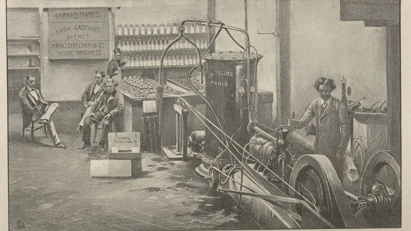 Aparatul frigorific al lui Charles Tellier instalat la Marsilia în 1868.