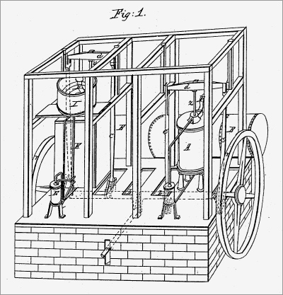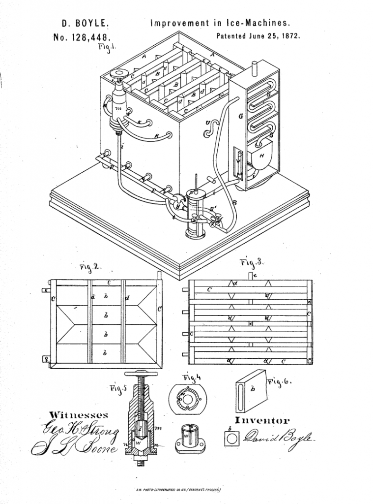Desen tehnic, prima masina de facut gheata, executie David Boyle 1872